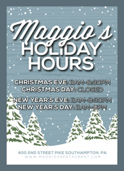 Restaurant Specials Order by Friday, December 19th Christmas Takeout Menus Thursday, December 25th Closed on Christmas Day All Month of December No Peeking!!! All Month of December Breakfast Specials